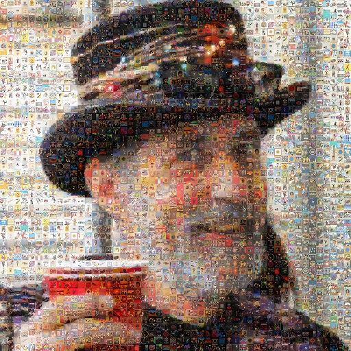 I create mosaic images from photographs using a collection of Album Cover art. The original image is transformed into a hi-resolution image consisting of over 2500 small "tiles" from the album art. The file is suitible for printing on a profession printer and framing. In addition, there is a digital version of the mosaic art that is hosted on my website.